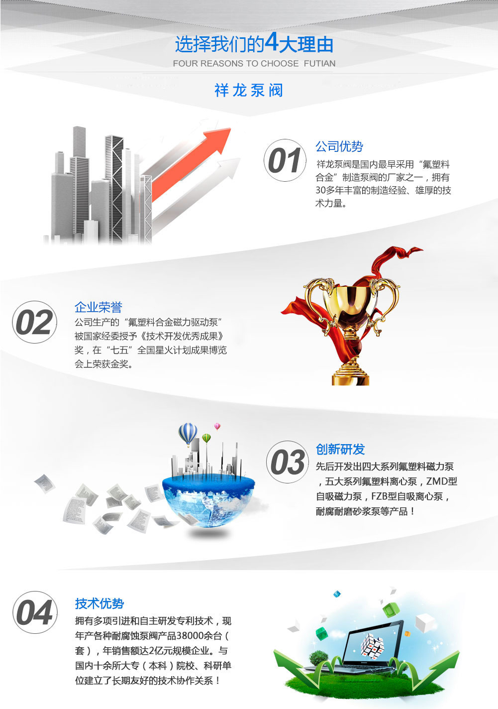 安徽祥龙泵阀有限公司是国内专业致力于耐腐蚀泵、阀、管道等设备的开发与生产及销售为一体的企业,是国内较早采用“氟塑料合金”制造泵阀的厂家之一,公司通过ISO9001国际质量体系认证,拥有30多年丰富的制造经验、雄厚的技术力量、 完善的检测手段、品种规格齐全、质量稳定可靠。